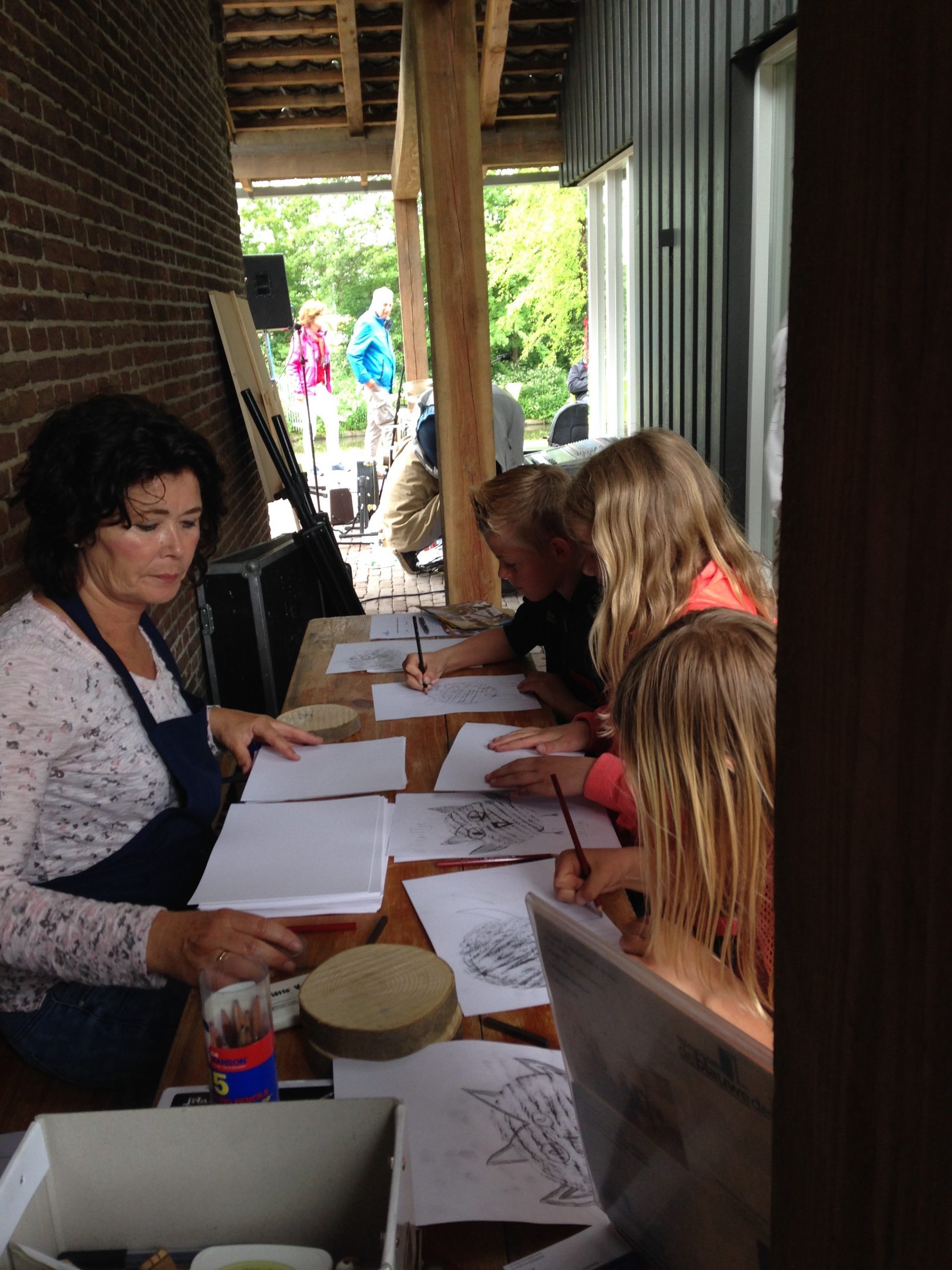 - Tekenen in het prieel bij Evelien